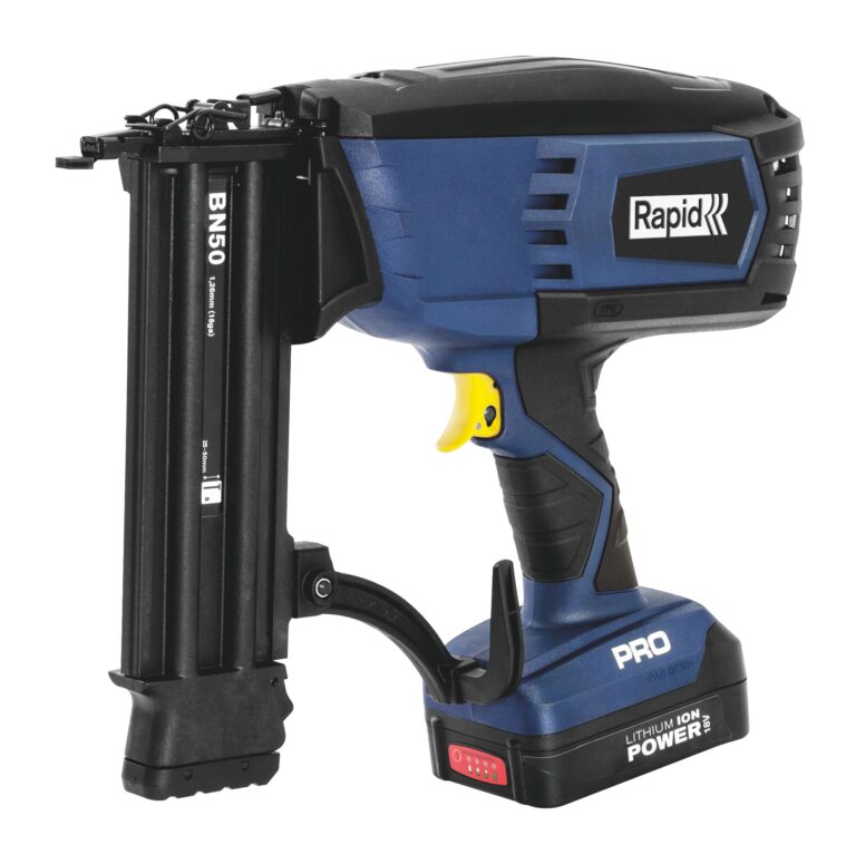 The BN50 is a powerful, mobile, cordless finishing nailer for professionals. Ideal for afwerkzaamheden, baseboards, window frames, paneling, flooring, panels and battens. Powered by a 18V Li-ion battery pack, the BN50 makes it possible to avoid complicated solutions driven gas (noisy, expensive, uncomfortable and time-consuming operation maintenance and cleaning). The direct reaction of tractor allows for efficiency and reduces working time. Other features include a quick release warehouse with push-button, flywheel drive for a high power and reliability, and two-step sequential trigger for safety. Ideal for demanding jobs and harsh environments where performance and reliability are crucial.